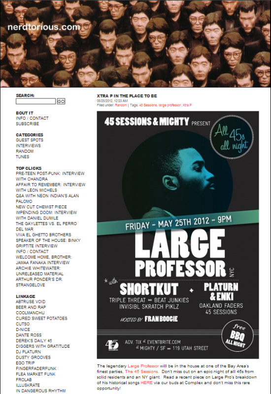 The first 45 Sessions party was incredibly fun, as DJ Platurn gathered up some of the area’s best DJs to play records akin to what you might hear at a house party: that is to say, old, vintage, obscure, rare, even novelty songs, all thematically linked by the 7-inch format. The party seemed to inspire the DJ community—vinyl merchants and record traders set up shop and helped to cultivate the ad hoc analog celebration—and continued for a few more Sessions at the Layover before moving to (the since-closed) Disco Volante. Some of the memorable evenings Oakulture witnessed at DV included the three-year anniversary with West Coast turntablist icons Shortkut and Rhettmatic, and a retrospectively heartbreaking set by the late Matthew Africa—as it turns out, his final DJ set before being killed in a car accident while returning from Lake Tahoe.