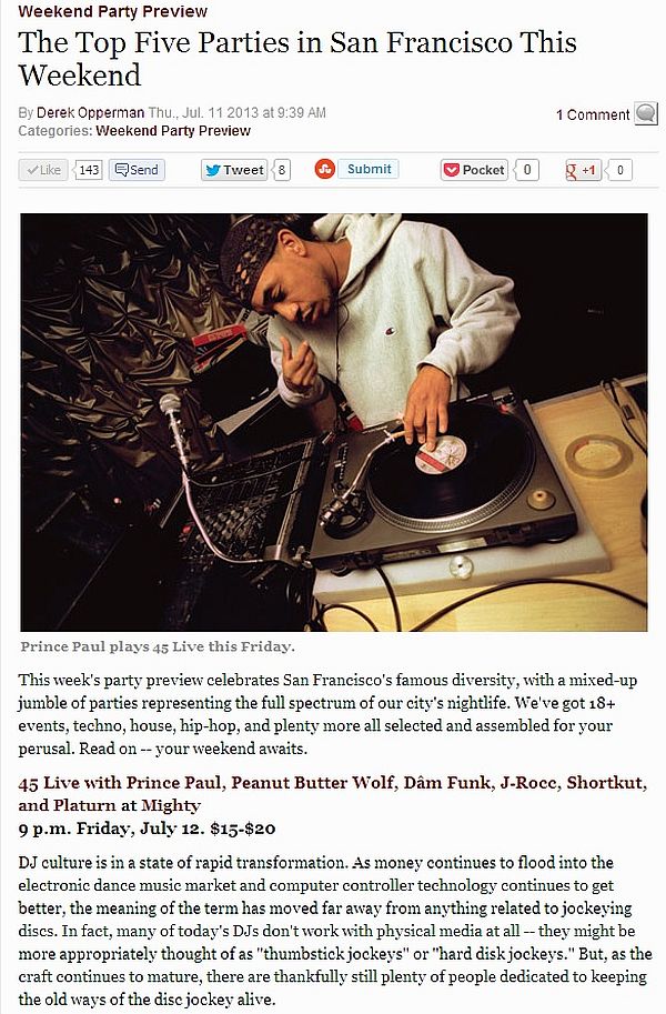 45 Live gets #1 in top 5 parties in SF via SF Weekly