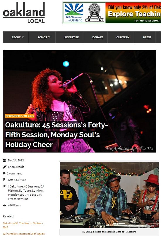 45 Sessions gets some love from Eric Arnold via Oakulture on Oaklandlocal.com